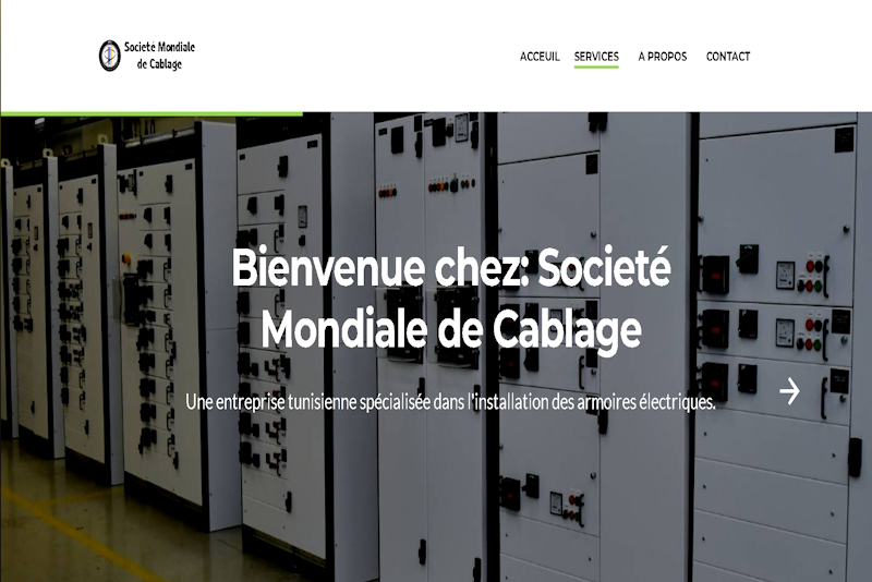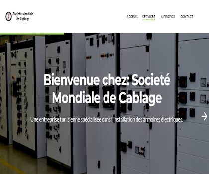 La societé de cablage "Societé Mondiale de Cablage" nous a confié la réalisation d'un site web simple pour aider à améliorer sa présence en ligne et donner aux clients une meilleure idée sur leurs services et comment les contacter.