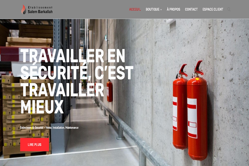 L’entreprise spécialisée en sécurité incendie "Établissement Salem Barkallah" nous a confié la création de son site web, afin d'améliorer sa visibilité en ligne et permettre à ses clients de mieux comprendre ses services. Le site offre également un espace dédié aux clients, leur permettant d’accéder facilement à leurs certificats, rapports, ainsi qu’aux fiches d’inspection de chaque produit installé ou entretenu.